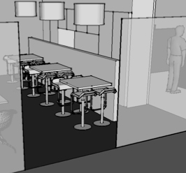 igényihez mérten a tervezőrészt 3 részre tagoltuk: A ‘Bár’ ahol egyszemélyes,